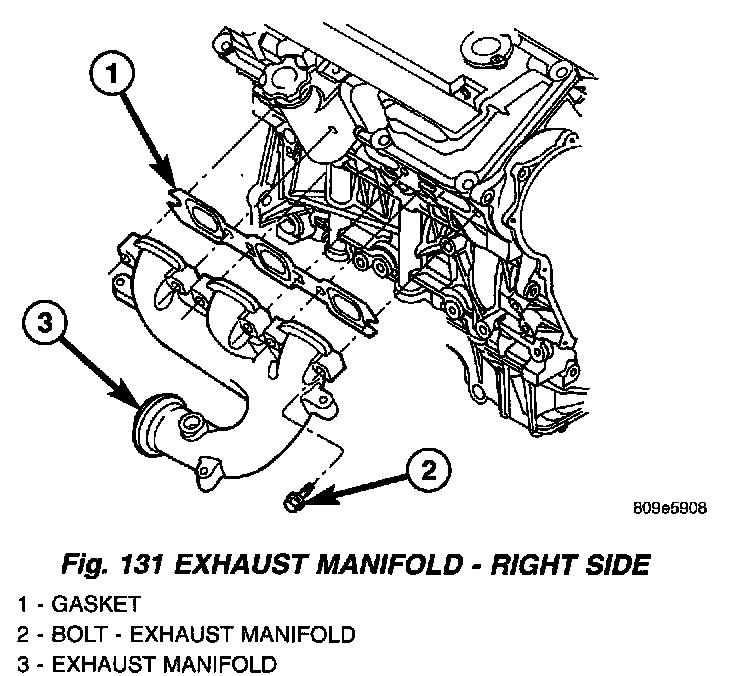 1. Install exhaust manifold and gasket. Tighten bolts starting at the center working outward to 23 Nm (200 inch lbs.) .