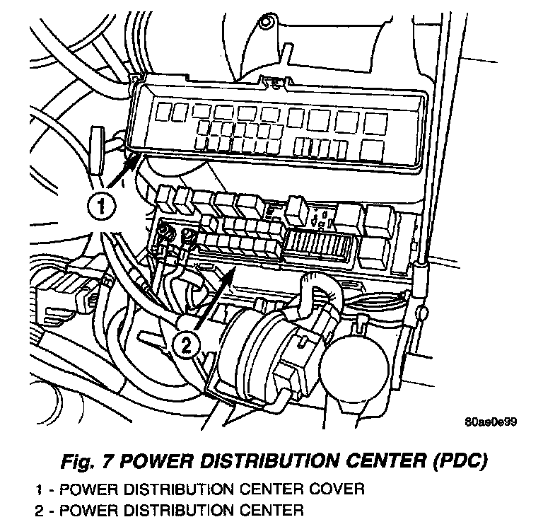 3. Refer to the label on the PDC for compressor clutch relay identification and location.
