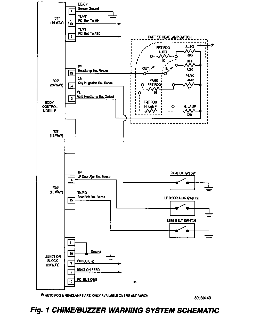 The Chime/Buzzer Warning System (Fig. 1) includes the following:
