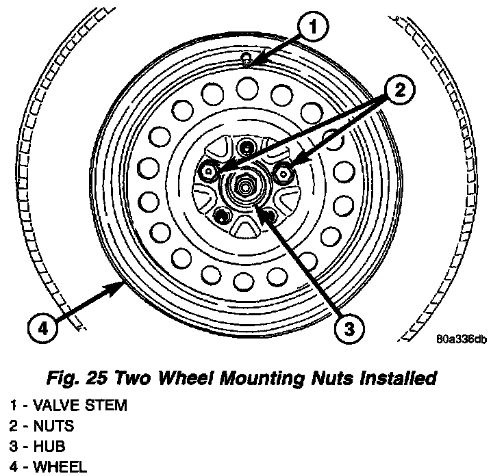 NOTE: Wheel mounting nuts must be installed on the studs as shown to allow installation of the wheel cover.