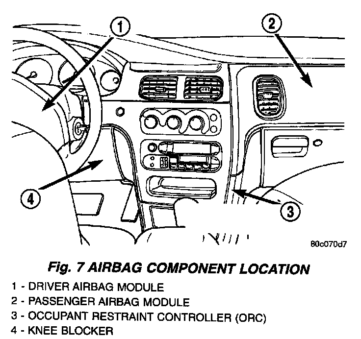 The accelerometer is located inside the ORC.Fig.7 Airbag Component Location: