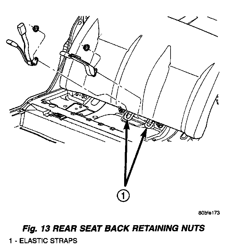 WARNING: THE REAR SEAT BACK RETAINING NUT ALSO SERVES AS THE CENTER SEAT BELT ANCHOR. BE CERTAIN TO TORQUE THIS NUT TO 40 Nm (30 ft. lbs.).