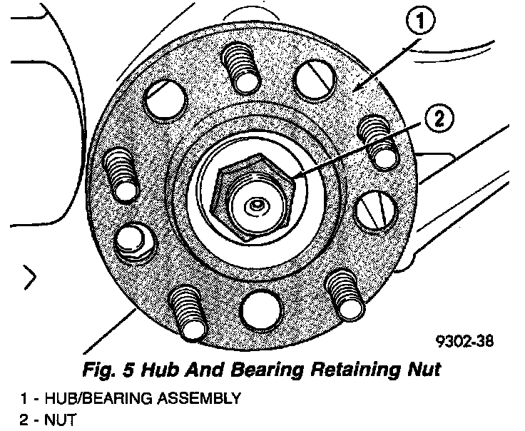 CAUTION: The hub and bearing axle retaining nut is a prevailing torque nut and cannot be reused. A NEW retaining nut MUST be used.