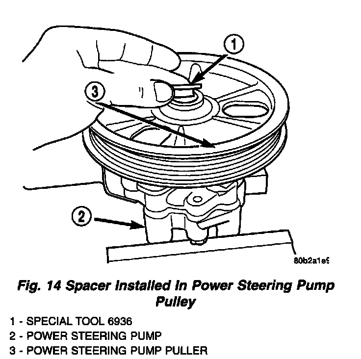 2. Install Spacer, Special Tool 6936, into the hub of the power steering pump pulley.
