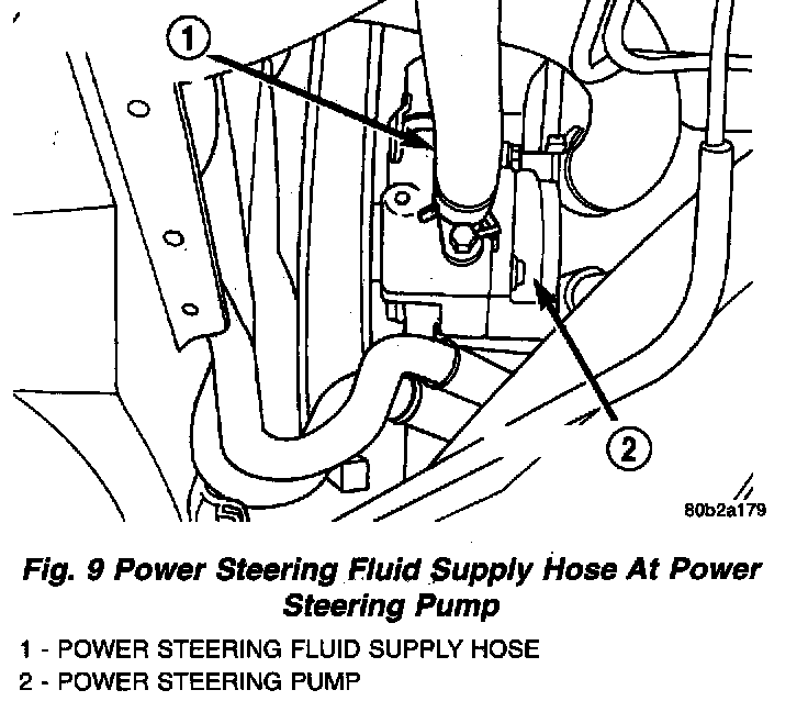 NOTE: The following step should be done to prevent excessive spilling of power steering fluid when the power steering fluid lines are removed from the power steering pump.