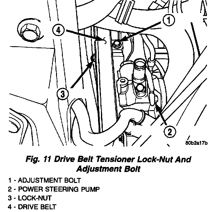 10. Using the adjustment bolt remove the tension from the drive belt for the power steering pump