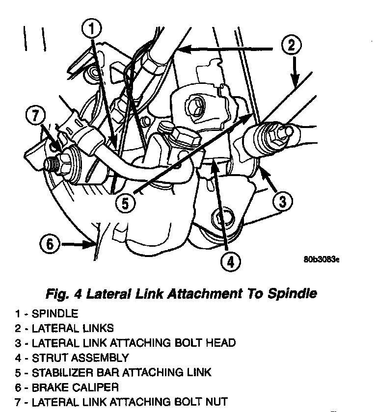 3. Install the lateral links on the spindle. Install, but DO NOT fully tighten the attaching bolt and nut at this time.