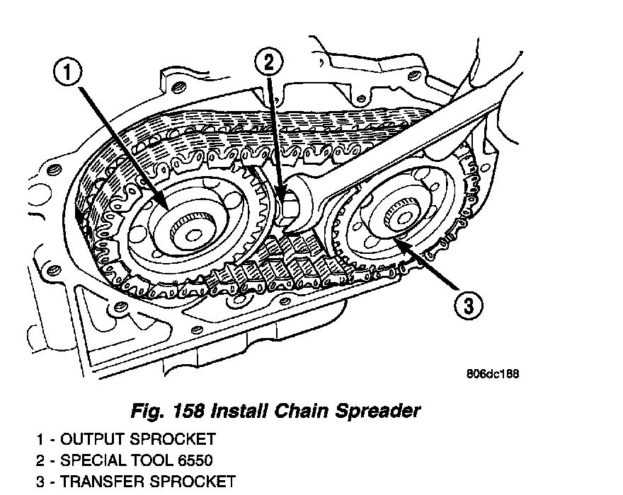 CAUTION: The chain sprockets have a slip fit onto their shafts. Apply only a slight amount of pressure to the chain spreader to release the chain pressure. If chain sprockets are not spread slightly removal or installation will be difficult. Overspreading of the chain sprocket will also make sprocket removal difficult.