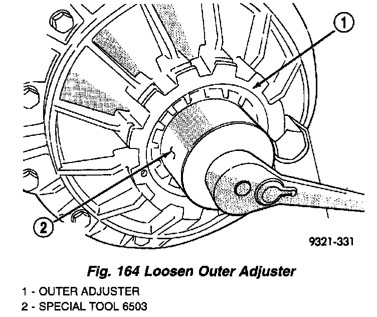 Install special tool 6577 to remove rear transfer bearing cup (Fig. 172).