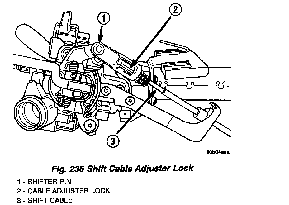 (2) Rotate cable adjuster into unlock position. Use a straight blade screwdriver to unlock adjuster (Fig. 235).
