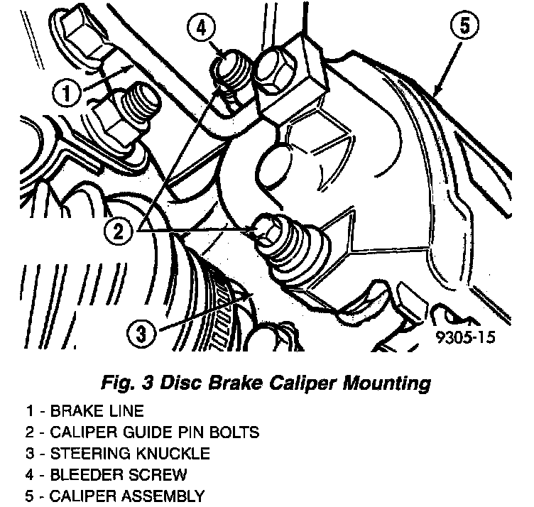 (3) Remove the front caliper assembly from the front steering knuckle assembly (Fig. 3).