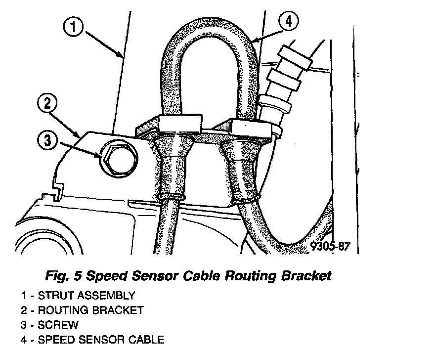 (5) Remove the speed sensor cable routing bracket from the strut assembly (Fig. 5).