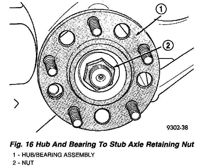 CAUTION: When tightening hub and bearing assembly to stub shaft retaining nut, do not exceed the maximum torque of 142 Nm (105 inch lbs.). If the maximum torque is exceeded this may result in a failure of the driveshaft.