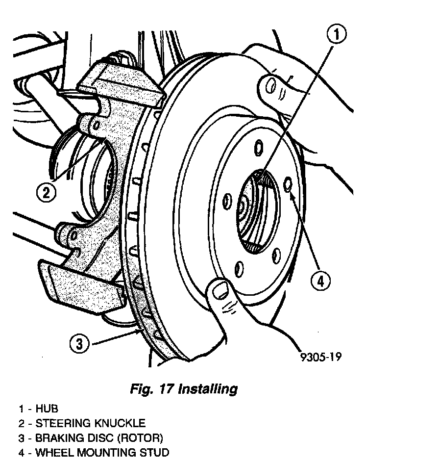 (10) Install the braking disk on the hub and bearing assembly (Fig. 17).