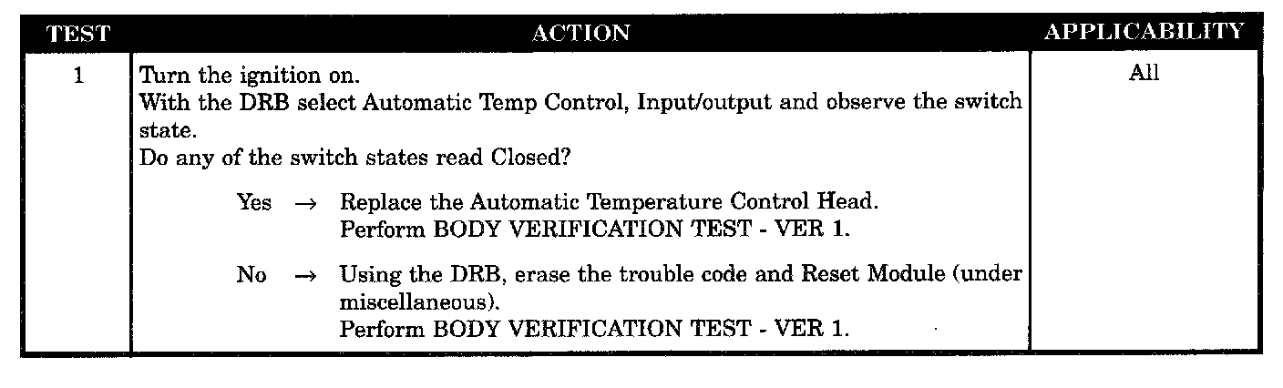 The BCM interfaces with the ATC head over the PCI Bus. If an ATC switch is held in the closed position for longer than 5 to 10 minutes, a switch failed code will be set.