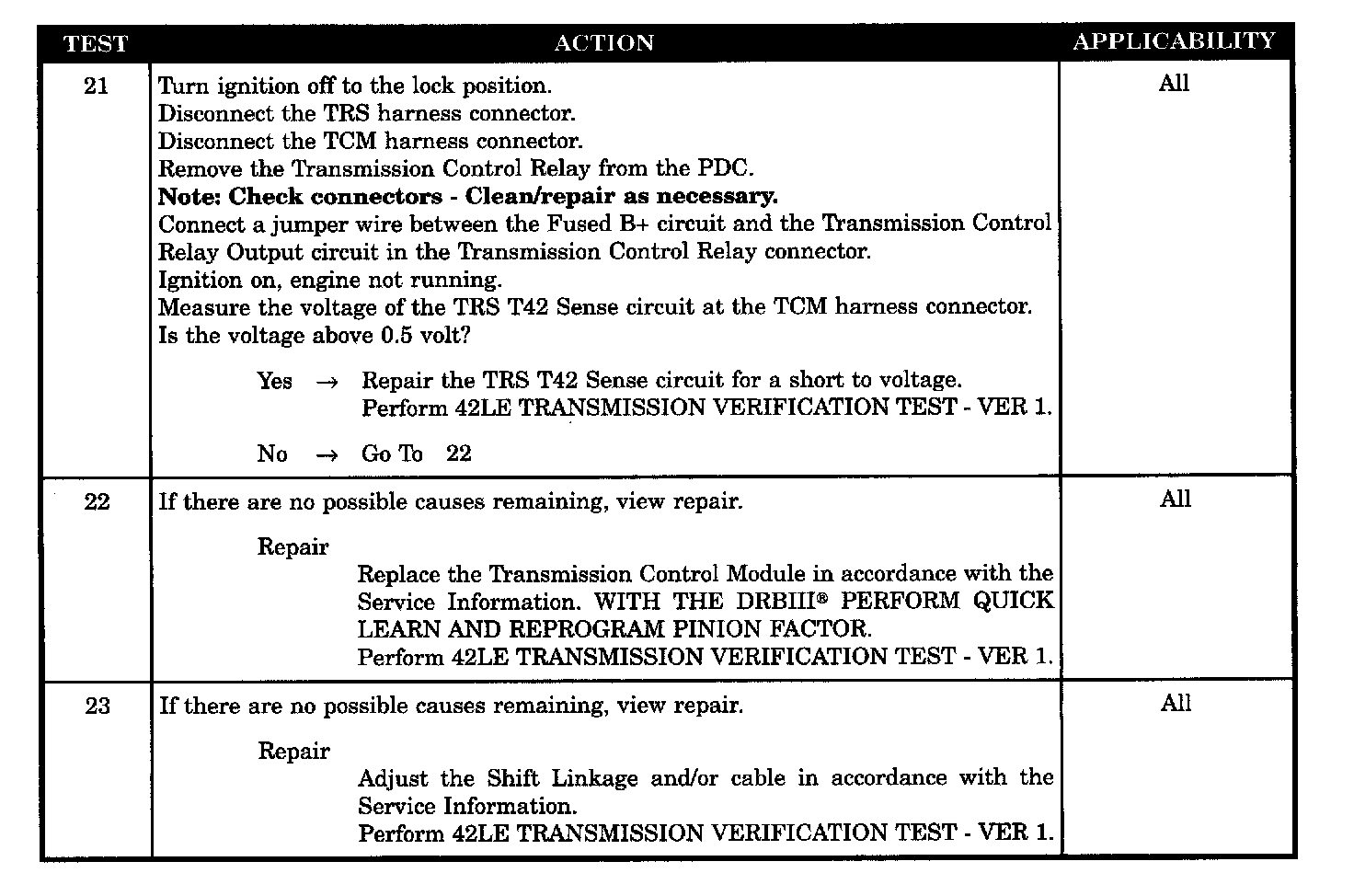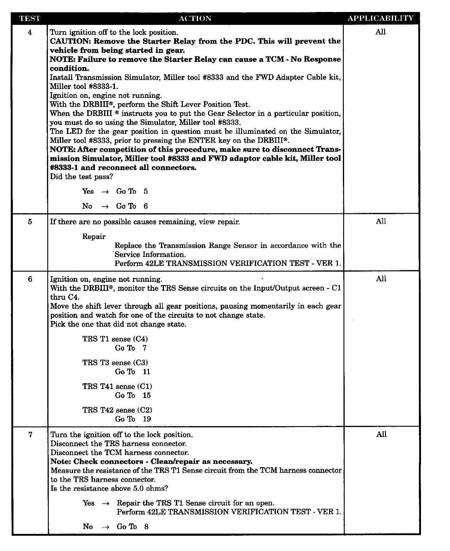 TRS T42 SENSE CIRCUIT SHORTED TO GROUND