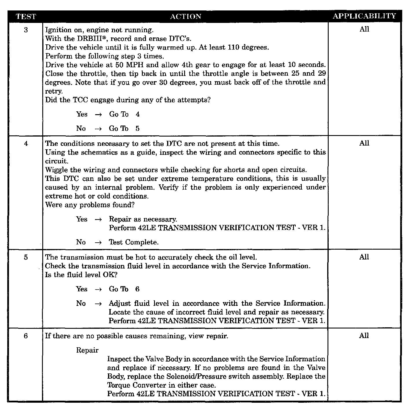 Set Condition: A) Transmission must be in EMCC, with input speed > than 1750 RPM. TCC/L-R Sol achieves the maximum duty cycle & can't pull engine RPM within 60 RPM of input speed. B) Transmissions is in FEMCC & engine slips TCC > than 100 RPM for 10 seconds.