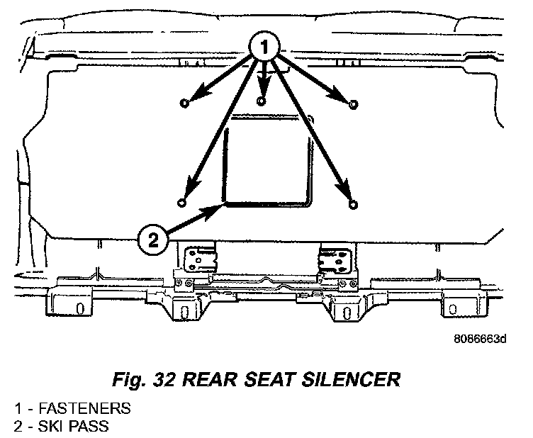 2. Remove silencer panel fasteners on the back of seat back (Fig. 32).