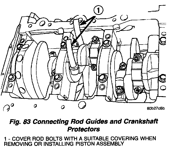 5. Install connecting rod bolt protectors on rod bolts (Fig. 83).