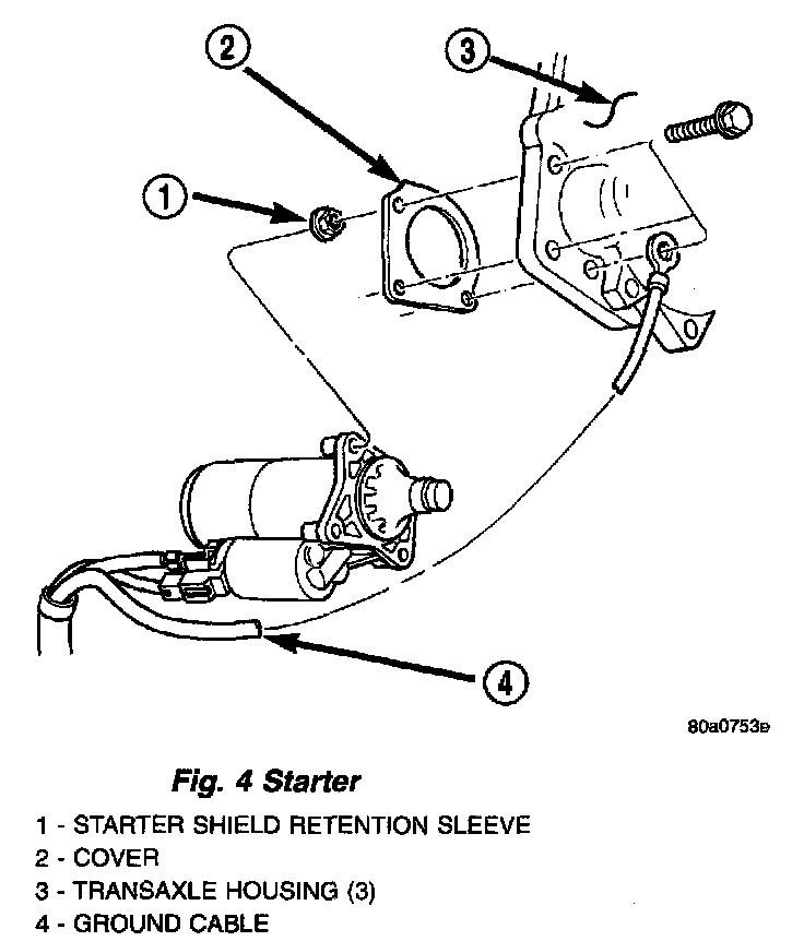 3. Remove three bolts attaching starter to engine (Fig. 4).