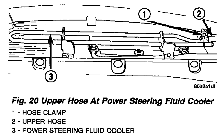 4. Install power steering fluid hoses and on the power steering fluid cooler. Be sure hose clamps are installed on hose past the upset bead on the power steering oil cooler.