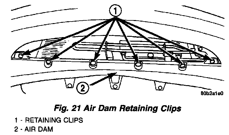 6. Remove the 6 clips mounting the air dam to the radiator lower support.