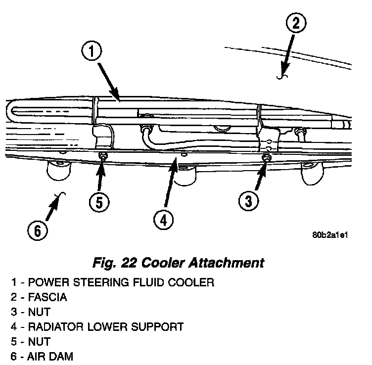 1. Install the power steering fluid cooler on the radiator lower crossmember.