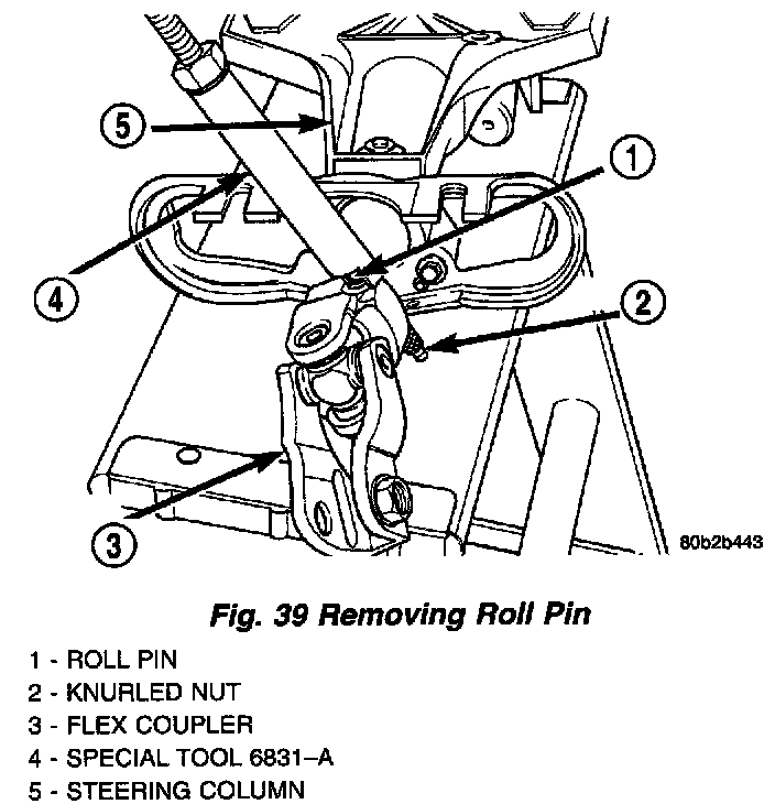 1. Start roll pin into coupler prior to installing coupler on steering column shaft. Install roll pin into coupler just far enough to square roll pin to hole in flex coupler. If roll pin is installed too far, coupler will not slide onto steering column shaft.