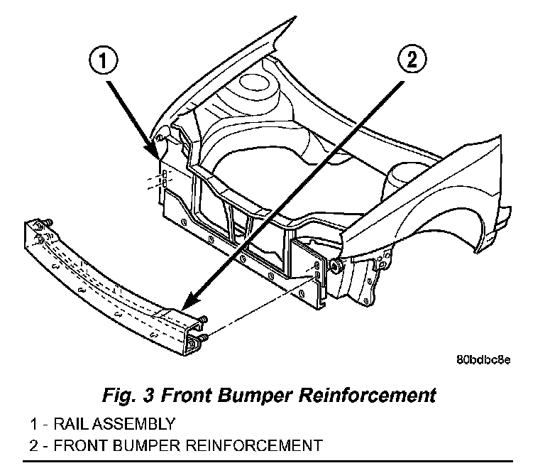 3. Remove nuts attaching reinforcement to the rail assembly (Fig. 3).