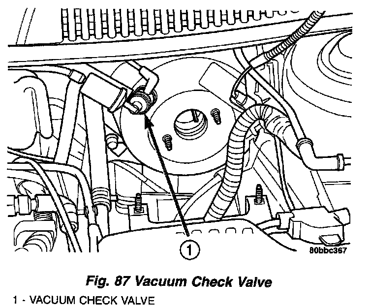 9. Disconnect the vacuum hoses from the check valve on the power brake booster, but do not remove the check valve from power brake booster.