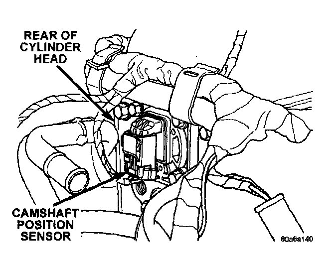 The camshaft position sensor is mounted to the rear of the cylinder head.