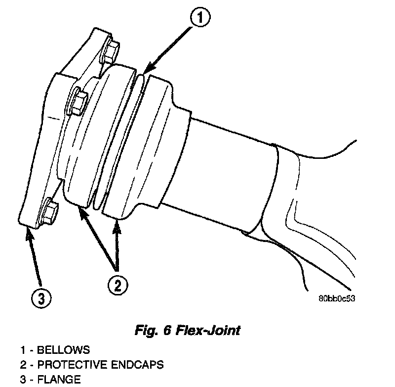 CAUTION: When servicing the catalytic converter, care must be exercised not to dent or bend the bellows or bellows cover of the flex-joint. Should this occur, the flex-joint will eventually fail and require the catalytic converter be replaced.