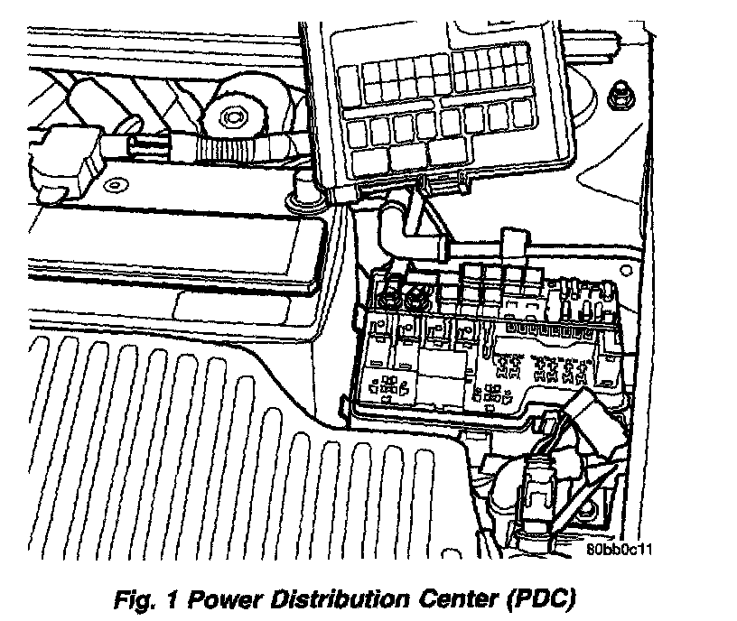 A buss bar in the Power Distribution Center (PDC) supplies voltage to the solenoid side and contact side of the relay. The fuse also protects the power circuit for the fuel pump relay and pump. The fuse is located in the PDG.