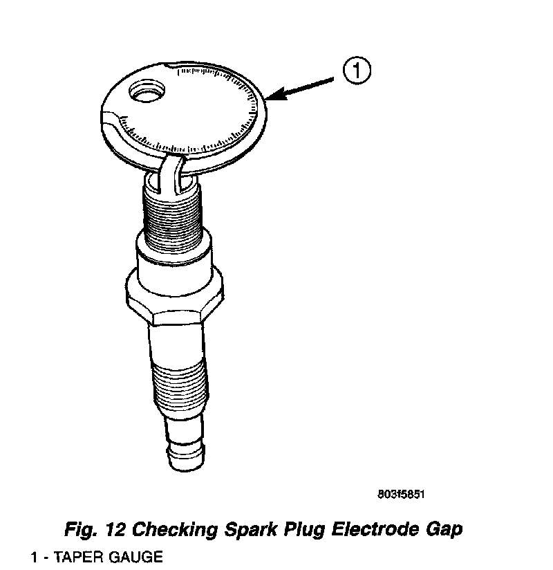Spark plugs that have low mileage may be cleaned and reused if not otherwise defective. Refer to the Spark Plug Condition. After cleaning, file the center electrode flat with a small point file or jewelers file. Adjust the gap between the electrodes to the dimensions specified in the chart by bending the ground electrode just above the attachment weld) with the appropriate tool.