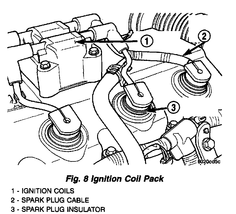 The coil pack consists of 2 coils molded together. The coil pack is mounted on the valve cover.