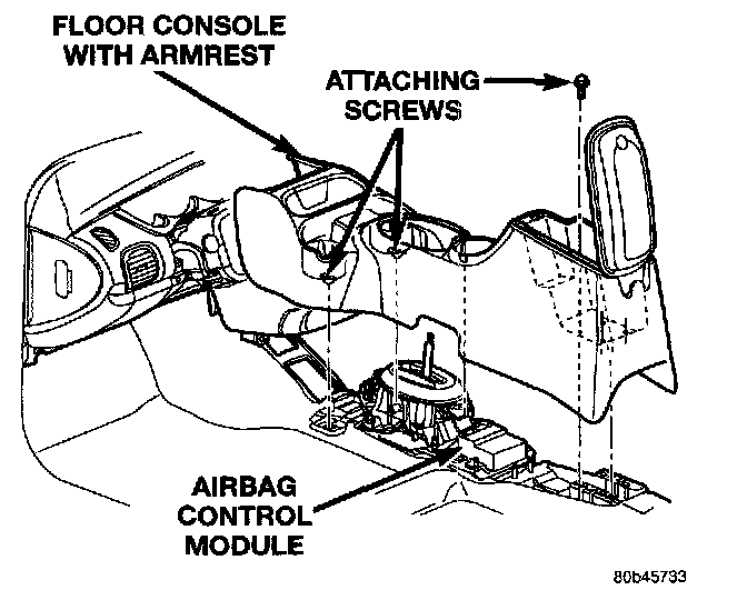 The Airbag Control Module (ACM) is mounted on the tunnel/floor pan between the gear shift lever and the park brake lever.