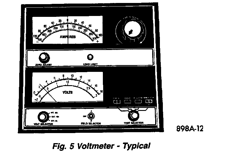 The following procedure should be used to recharge a completely discharged battery. Unless this procedure is properly followed, a good battery may be needlessly replaced.Fig.5 Voltmeter - Typical: