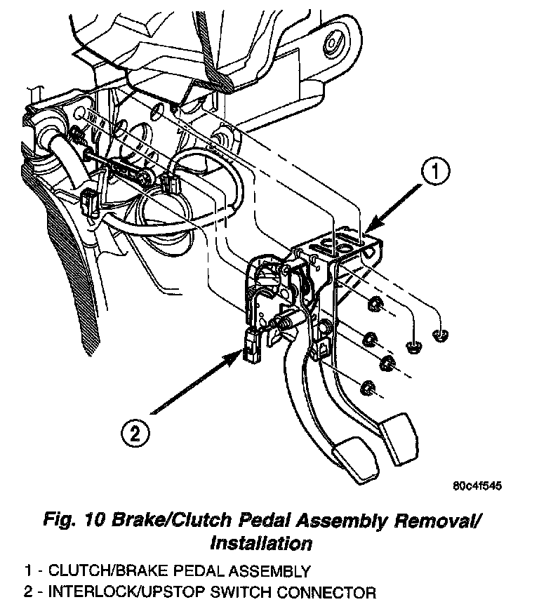 6. Remove two pedal assembly bracket to instrument panel nuts (Fig. 10).
