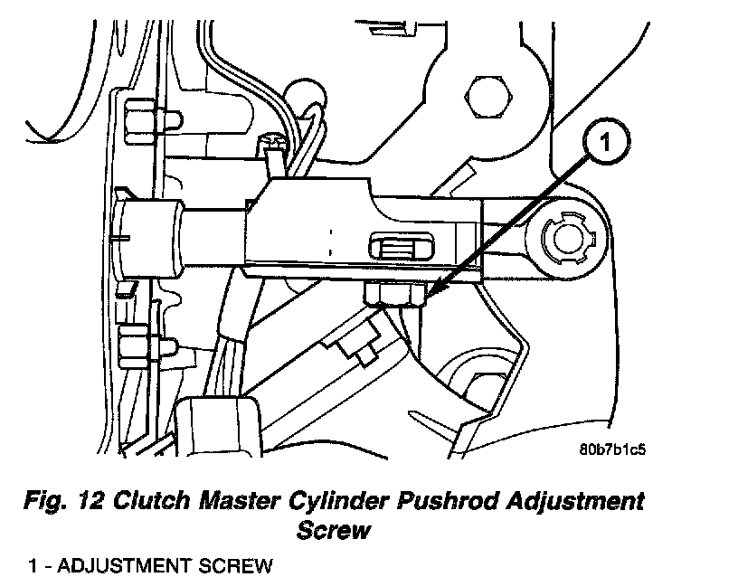 6. Connect clutch master cylinder pushrod. Loosen adjustment screw (Fig. 12) and gently lift clutch pedal upwards until the clutch pedal fully depresses the the upstop switch. Torque adjustment screw to 8 Nm (70 inch lbs.).