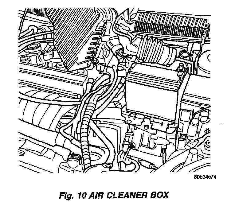 7. Reposition the air cleaner box into position and connect the inlet hose from intake manifold (Fig. 10).