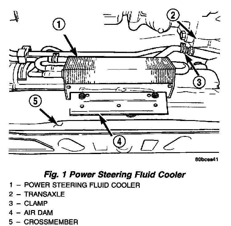 4. Install the two screws attaching the cooler to the front suspension crossmember. Tighten the cooler attaching screws to a torque of 10 Nm (90 inch lbs.).