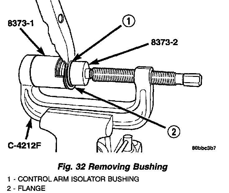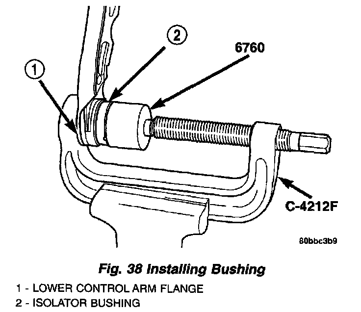 NOTE: The removal and installation of the rear isolator bushing from the lower control arm is only to be done with the lower control arm removed from the vehicle.