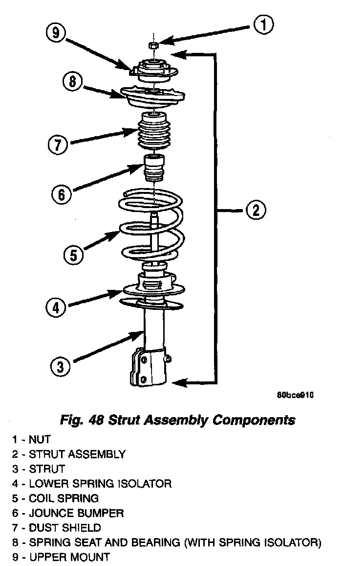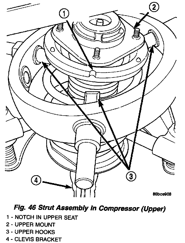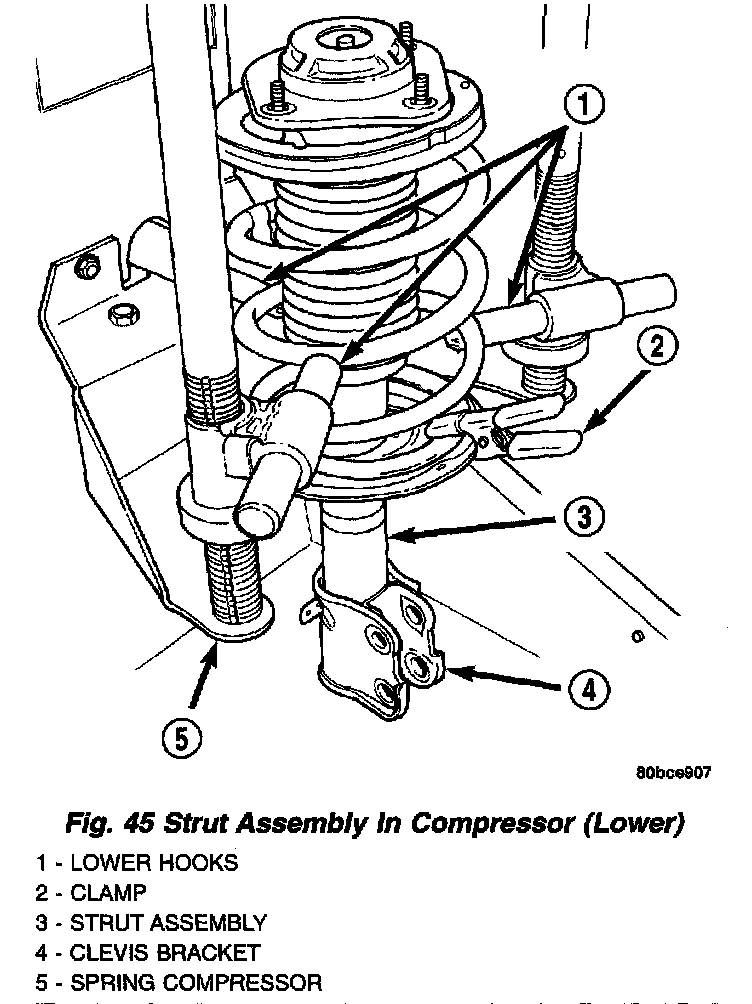 ASSEMBLY - STRUT ASSEMBLY (FRONT)For the disassembly and assembly of the strut assembly, use strut spring compressor, Pentastar Service Equipment (PSE) tool W-7200, or the equivalent, to compress the coil spring. Follow the manufacturer's instructions closely.