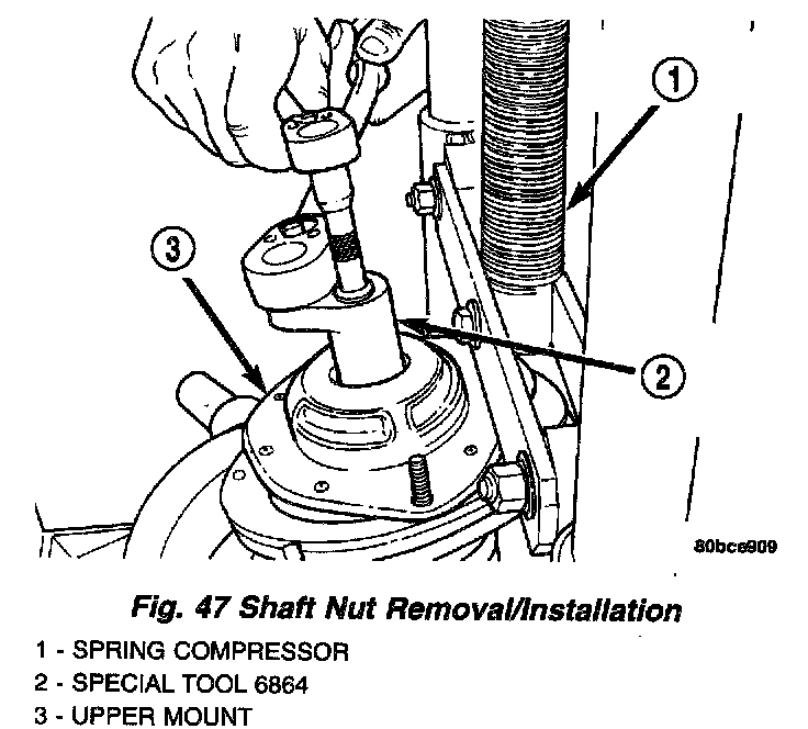 NOTE: If the coil spring has been removed from the spring compressor, proceed with the next step, otherwise, proceed with step 3.