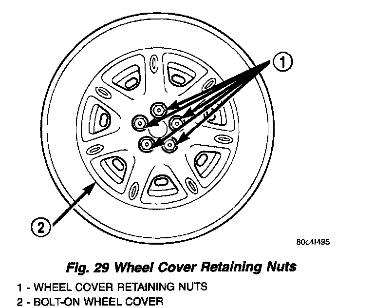 NOTE: When tightening the wheel cover retaining nuts it is recommended that a hand wrench be used and not an impact wrench. Use of an impact wrench could result in damage to the wheel cover retaining nuts.