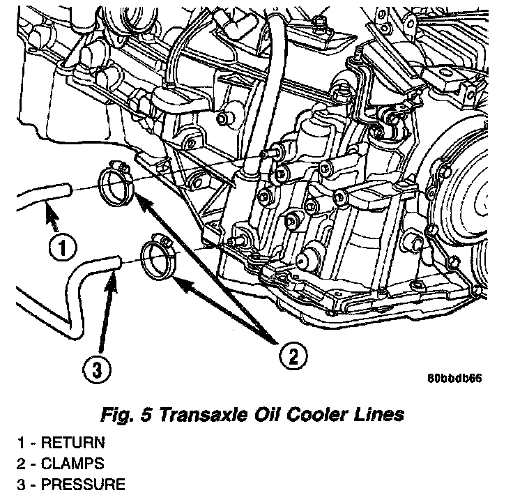 15. Connect transaxle cooler lines and tighten clamps (Fig. 5).