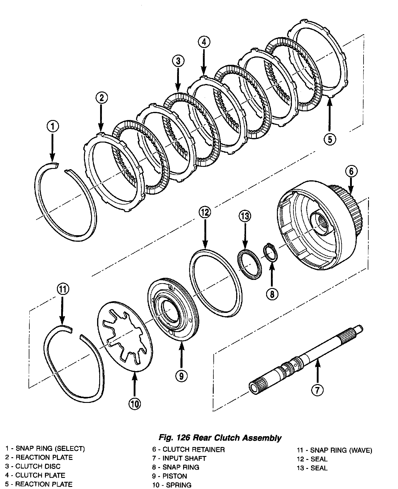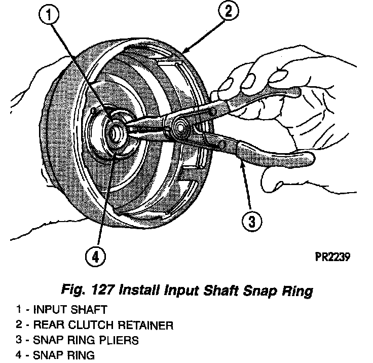 1. Install input shaft-to-clutch retainer snap ring (Fig. 127) (Fig. 128) (Fig. 126).