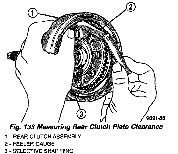 5. Using feeler gauges, measure rear clutch clearance (Fig. 133). Rear clutch clearance should be within 0.71 - 1.10 mm (0.028 - 0.043 inch).