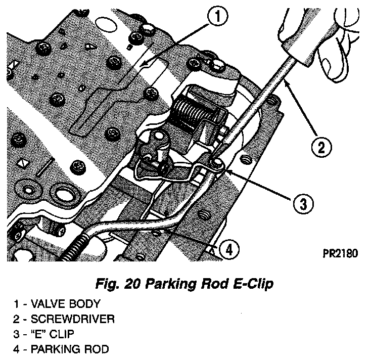 7. Remove park rod retainer e-clip (Fig. 20).