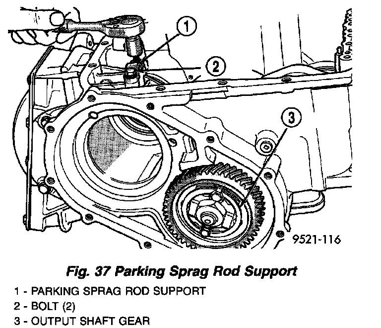 23. Remove park sprag rod support-to-case bolts (Fig. 37).